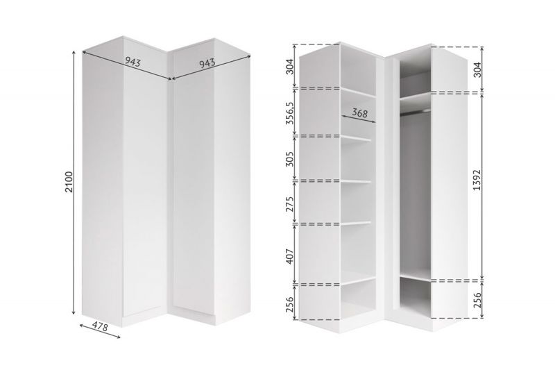 Артикул: A58680Шкаф угловой Экспресс с зеркалом, белый снег (Е1)